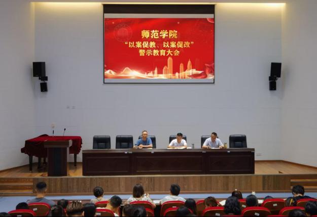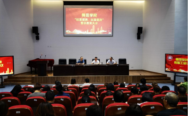 2023年9月19日下午,beat365官网登录中文在翔凤厅召开以案促教、以案促改的警示教育大会。党总支书记彭松林主持会议,全体教职工参加会议。