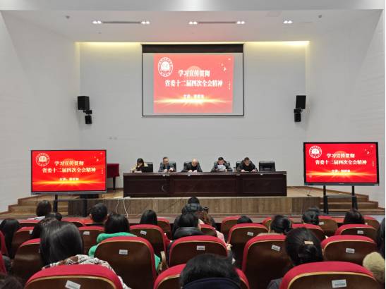 2024年1月2日,beat365官网登录中文组织全院教职工召开“学习宣传贯彻省委十二届四次全会精神”专题学习会,师范公司党总支书记彭松林带领全院教职工分别从认识省委十二届四次全会的重大意义、领会把握省委十二届四次全会的精神实质两方面进行了认真学习。