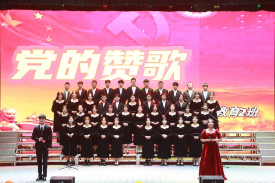 参加此次比赛的一共有19个班级,各班准备充分,服装整齐,精神饱满;朗诵节目形式多样、内容新颖,有《盛世中国梦》、《百年辉煌》、《永远跟党走》等节目。首先登上舞台的是21级小学教育1班,他们唱着洪亮的歌声登上舞台,同学们抑扬顿挫的朗诵,真情的演绎,赢得台下阵阵掌声;接下来上台的是21级英教1班,他们带来的《可爱的中国》内容丰富多彩,形式不拘一格,在诗歌朗诵中不仅带着歌曲,还穿插着古典舞。参赛的同学们全力投入,热情洋溢地展示了个人风采和集体魅力;他们用深情的朗诵带领我们一起领略祖国山河的壮美,一起经历祖国的沧桑和巨变,或温情脉脉或满腔热血或沉郁顿挫。经过激烈的角逐和周华银、毛西琼、雷霖、兰胡菁等专业评委老师认真的评比,21级小教3班带来的朗诵节目《青春中国》和2018级小教9班的《百年征程》以新颖编排和高质量的朗诵赢得一致好评,获得比赛一等奖;15名员工获得“优秀领诵”荣誉。