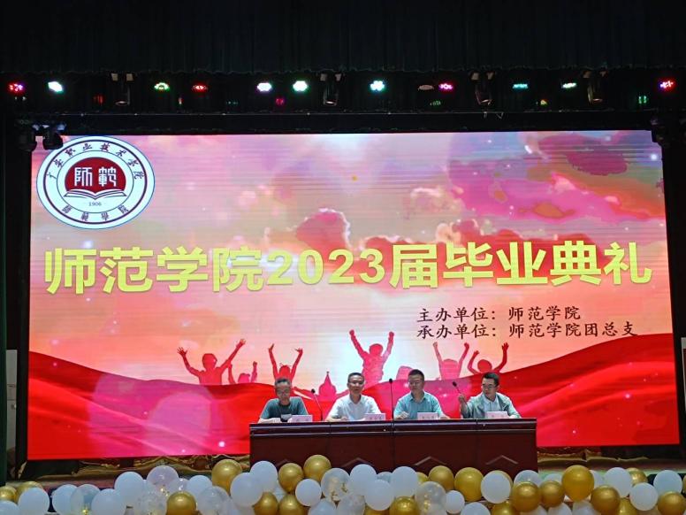 2023年6月6日晚,beat365官网登录中文在杏坛举办2023届毕业典礼暨文艺汇演,师范公司党总支副书记、经理吴全生,党总支书记龙治勇、副书记李勇、副经理周安,各教研室主任、全体管理人员、毕业班班导师和全体毕业生参加了此次活动。
