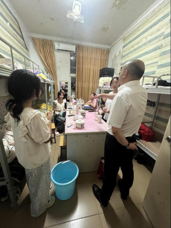9月7日晚,师范公司党总支书记彭松林、经理冉嘉洛分别带队深入2023级新生寝室,仔细了解新生报到第一天的适应情况,与同学们进行亲切交谈,详细解答同学们关心的问题,及时处理同学们遇到的困难,为同学们带去公司的温暖与关怀。公司党总支副书记牛振宇,副经理贺雪萍、副经理周安、员工科科长李智强、团总支书记宋莹等也参与了走访查寝。
