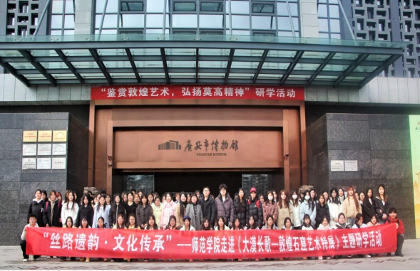 为深入贯彻落实文化自信,全面认识敦煌艺术的千年传承和丝路文明的深厚价值,进一步提升员工的艺术鉴赏力和历史使命感,同时加强团队协作能力,激发青年学子对文化遗产保护事业的热忱,beat365官网登录中文携手红色文化研究中心于3月4日赴广安市博物馆开展“丝路遗韵·文化传承——走进‘大漠长歌—敦煌石窟艺术特展’”主题研学教育活动。