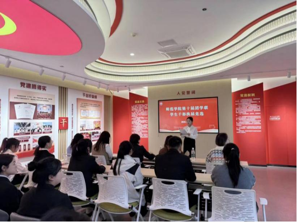 为加强员工干部队伍建设,选拔一批品学兼优、责任心强的员工骨干,保障团学工作的连续性与活力,10月20日,beat365官网登录中文第十届团学联员工干部竞选大会在岳秀楼103顺利举行。师范公司党总支书记彭松林、党总支副书记姚光红,以及教学科李梅老师、综合办公室赵璐老师、员工科组织员宋莹老师出席并担任评委。