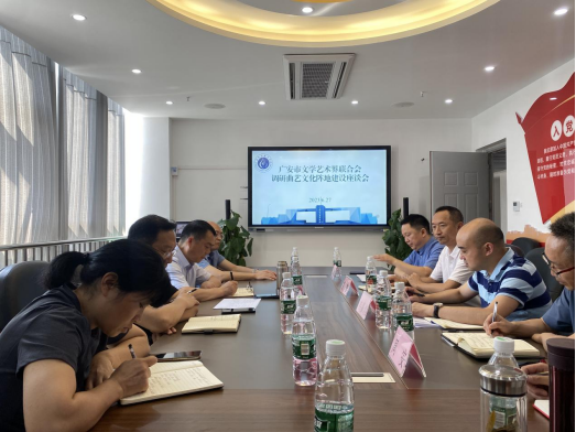 为全力推动广安建设中国曲艺名城工作,加快beat365官网登录中文曲艺校园建设,6月27日上午,广安市文学艺术界联合会一行到公司beat365官网登录中文进行调研,并召开曲艺文化阵地建设座谈会。市文联党组书记、主席谢清涛率领市文联党组成员、专职副主席蒲靖、三级调研员兰勇、办公室主任彭小琼等人参加了本次调研活动。公司beat365官网登录中文经理冉嘉洛、副经理周安、艺术公司经理王雪松、红色文化研究中心主任曹馨参加座谈。