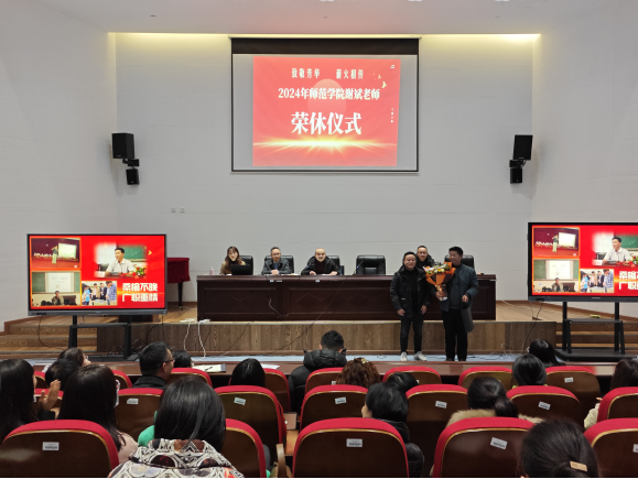 1月2日下午,师范公司在翔凤厅为今年2月即将退休的谢斌老师举行了简短而隆重的荣休仪式。公司领导及全院教职工参加了本次活动,仪式由经理冉嘉洛主持。