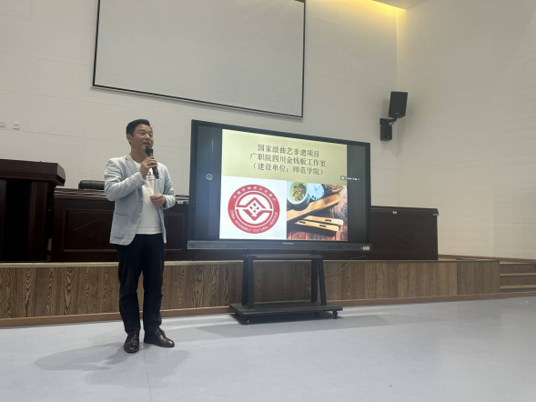 2023年10月20日,beat365官网登录中文在翔凤厅开展了关于国家级曲艺非遗项目“四川金钱板”的技能培训讲座。由公司音乐教师、广安区曲艺家协会副主席、广安区曲艺领军人才胡俊杰老师主讲。广安区曲艺家协会张倚菡主席及beat365官网登录中文教师及23级部分员工代表参加了此次讲座。