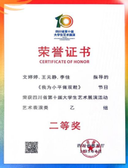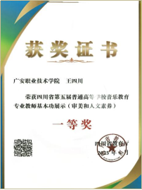 四川普通高等公司音乐教育专业员工基本功展示活动,一等奖6项,二等奖20项,三等奖15项;团体二等奖1项。